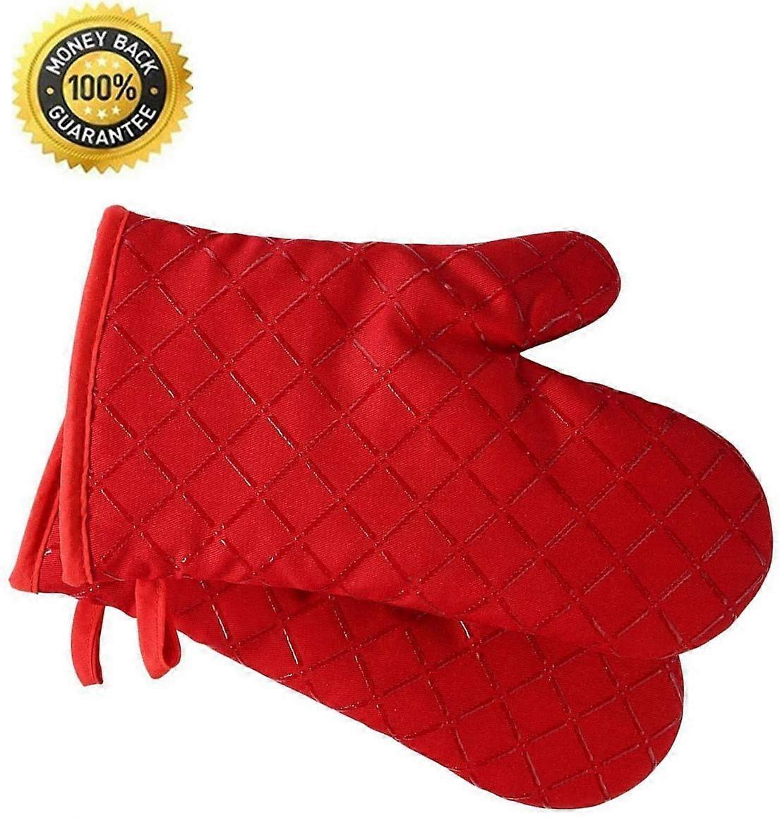 Premium Non-Slip Oven Gloves(Set of 2) Up To 240 C-Silicone Extremely Heat-Resistant Grill Gloves Bbq Gloves-Oven Gloves,Red