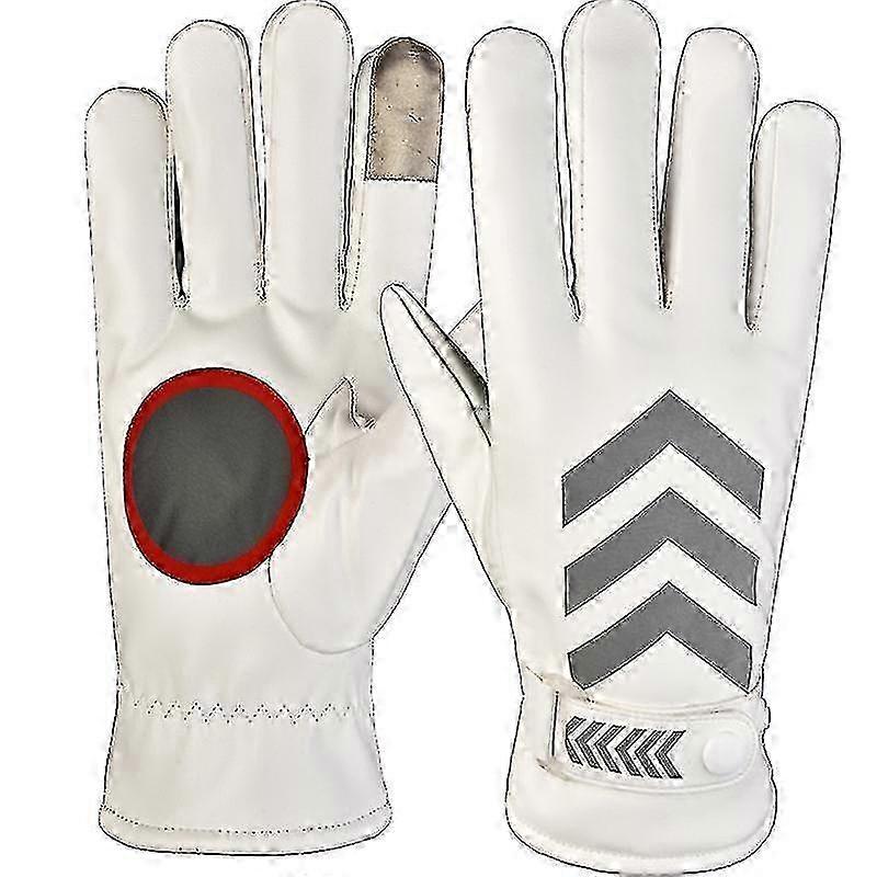 Men's PU Gloves, Warm Slip Resistant Padded Water Resistant Reflective Touch Screen, White