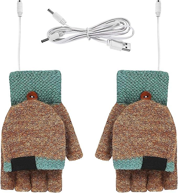 Usb Heated Gloves, Unisex Winter Hand Warm Gloves Washable Usb Heated Gloves Full Half Finger Heated Gloves Laptop Gloves Mitten2pcsgreenbrown