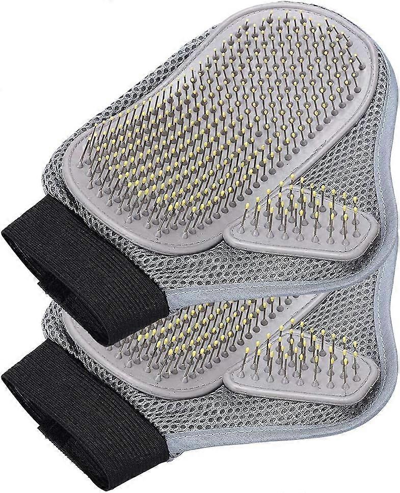Material-Stainless steel and mesh, with soft rubber tip and massage needles, can gently solve troublesome tangles, soft and flexible. Pets and the environment are healthier - waxing not only helps to reduce airborne hair, but also stimulates oil on the skin and improves hair softness and shine. Adjustable and comfortable - flexible and breathable, our brushes for dogs and cats are suitable for most pet owners thanks to the adjustable strap. Easy to clean - when using pet brush gloves, excess hair will stick to the tip and it's easy to peel off and dispose of when finished. When it gets dirty, just wash it with warm watersoapy water and air dry. Multifunctional wet and dry use very suitable for dogs and cats with short, medium, curly or long hair. You can use this glove every day or in the bath for deep cleaning. Pet grooming gloves, keep your pet looking clean and healthy while reducing scattered hair around the house! Feature: -With our grooming gloves, you can keep your pet happy, healthy and clean by meeting their daily grooming needs. -In addition, you will be able to use the gloves for different types of fur, thick or light-colored coats. -It will be especially useful if your dog or cat has lost its hair. -This makes it easier to maintain a clean workspace. -Stainless steel needle shape, can be better modified, stroked and massaged. -Your pet will feel relaxed when cleaning and brushing teeth. Specification: -Flexible grooming gloves with soft rubber heads -Material: Needle Net+Stainless Steel -Adjustable wrist strap (one size fits all users) -Lightweight and breathable -Mild depilatory -Machine washable (easy to clean) -Safe for cats, dogs and other pets -Dimensions: 23.5 x 18.5cm (9.3 * 7.2 inches) Package includes: 2x Pet Grooming Glove Brush
