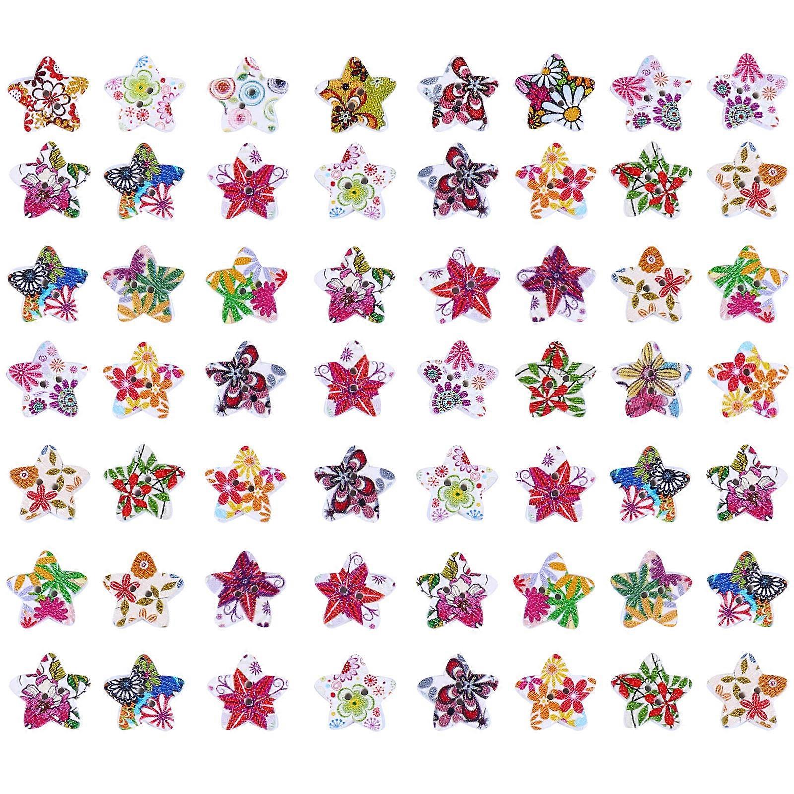 Decorative Buttons Embellishments Five-Pointed Star Mixed Style Wood For Headwear Hat Shoulder Bag Shoe Knitwear 1.75X1.75CM 200Pack