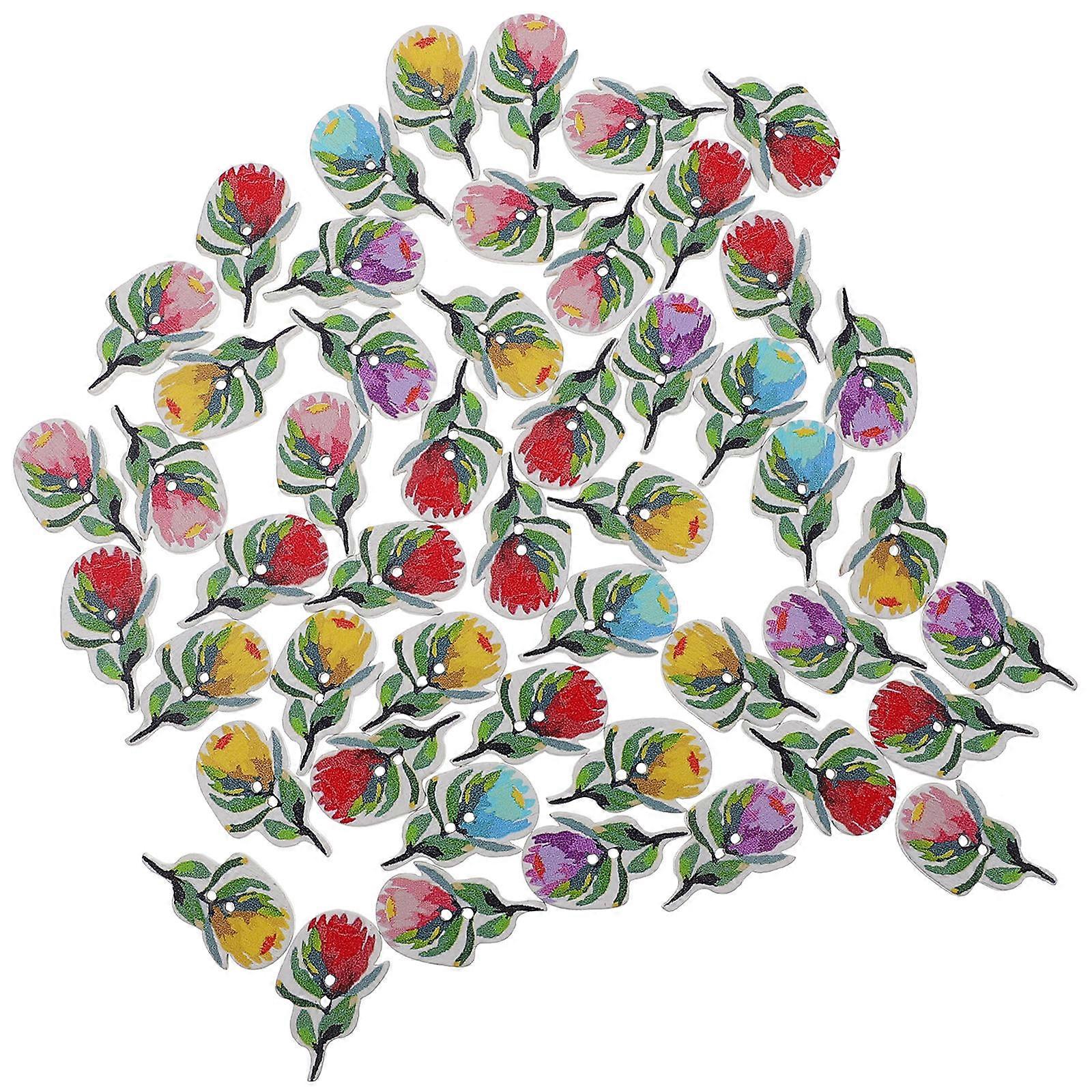 Wood Buttons Craft Decoration Rose Flower Buttons for DIY 300Pcs