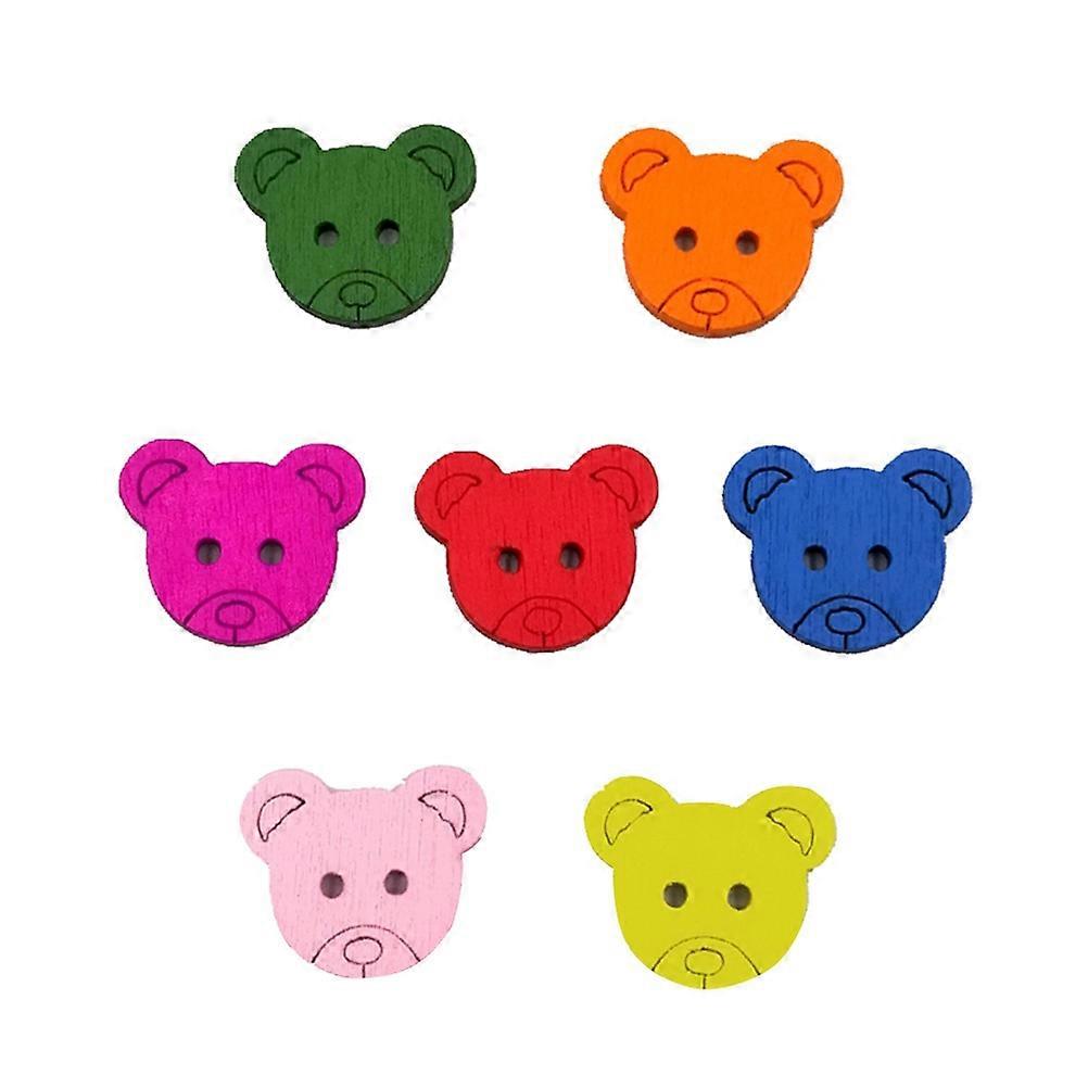 Colorful Wooden Cartoon Buttons for Crafting Use Animal Bear Head Buttons