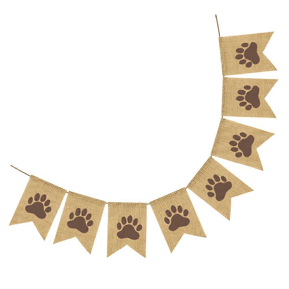 Animal Pawprint Burlap Banner Dovetail Shape Linen Fabric Bunting 18*13 Cm Families Photoshoot Party Decoration 1Pack