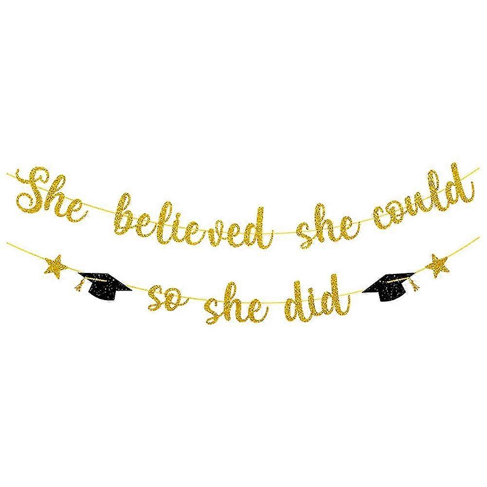 Graduation Banner,She Believed She Could So She Banner Garland Photo Prop Banner for Party Home Cla