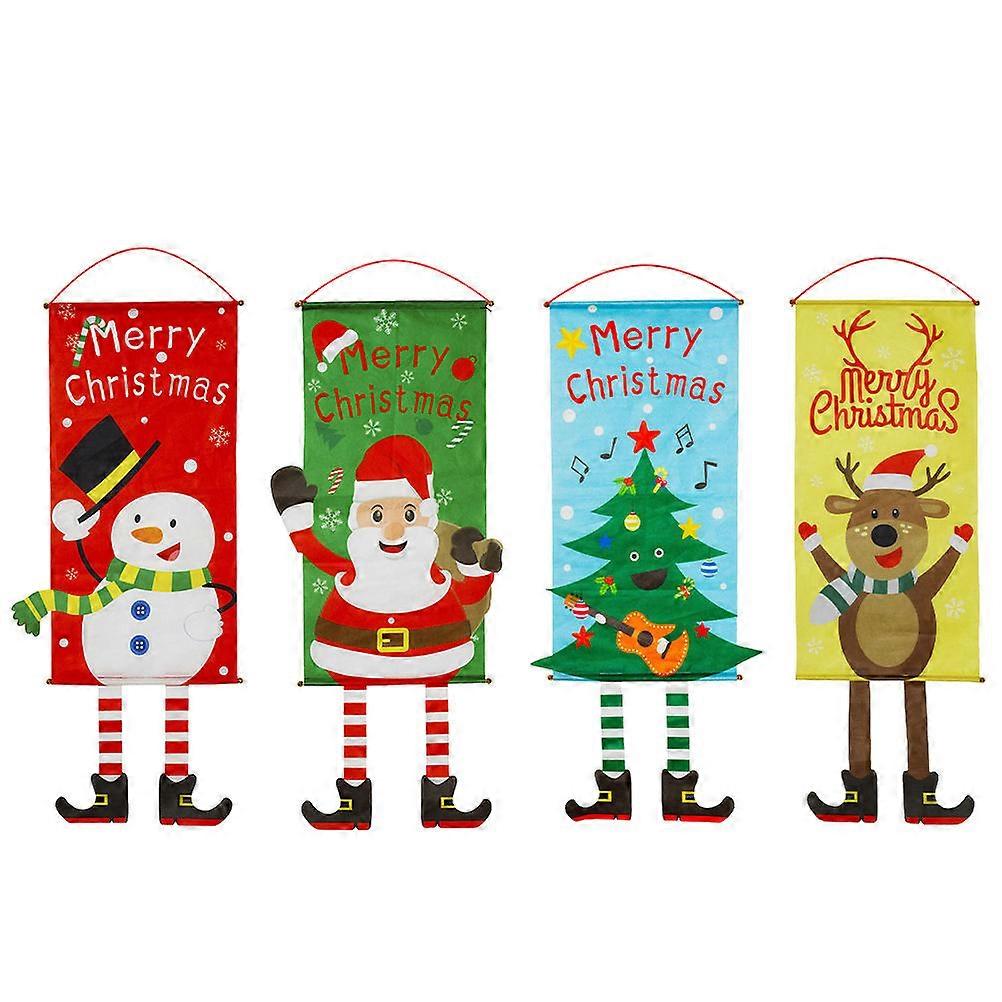 Christmas Wall Banner Decorative Door Curtain Assorted Color 115x40cm Festive Atmosphere 4Pcs