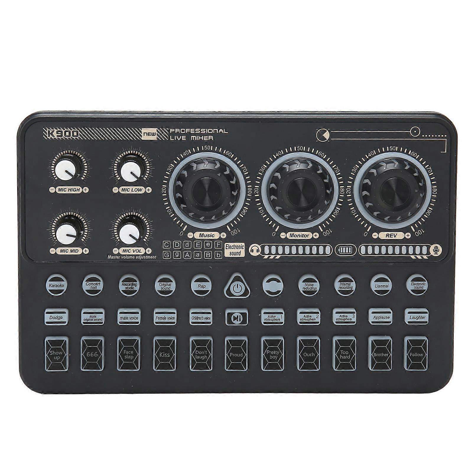 Live Sound Card Bluetooth 5.0 Noise Reduction 6 Sound Change Stable Signal Professional Sound Mixer for Live Streaming Black