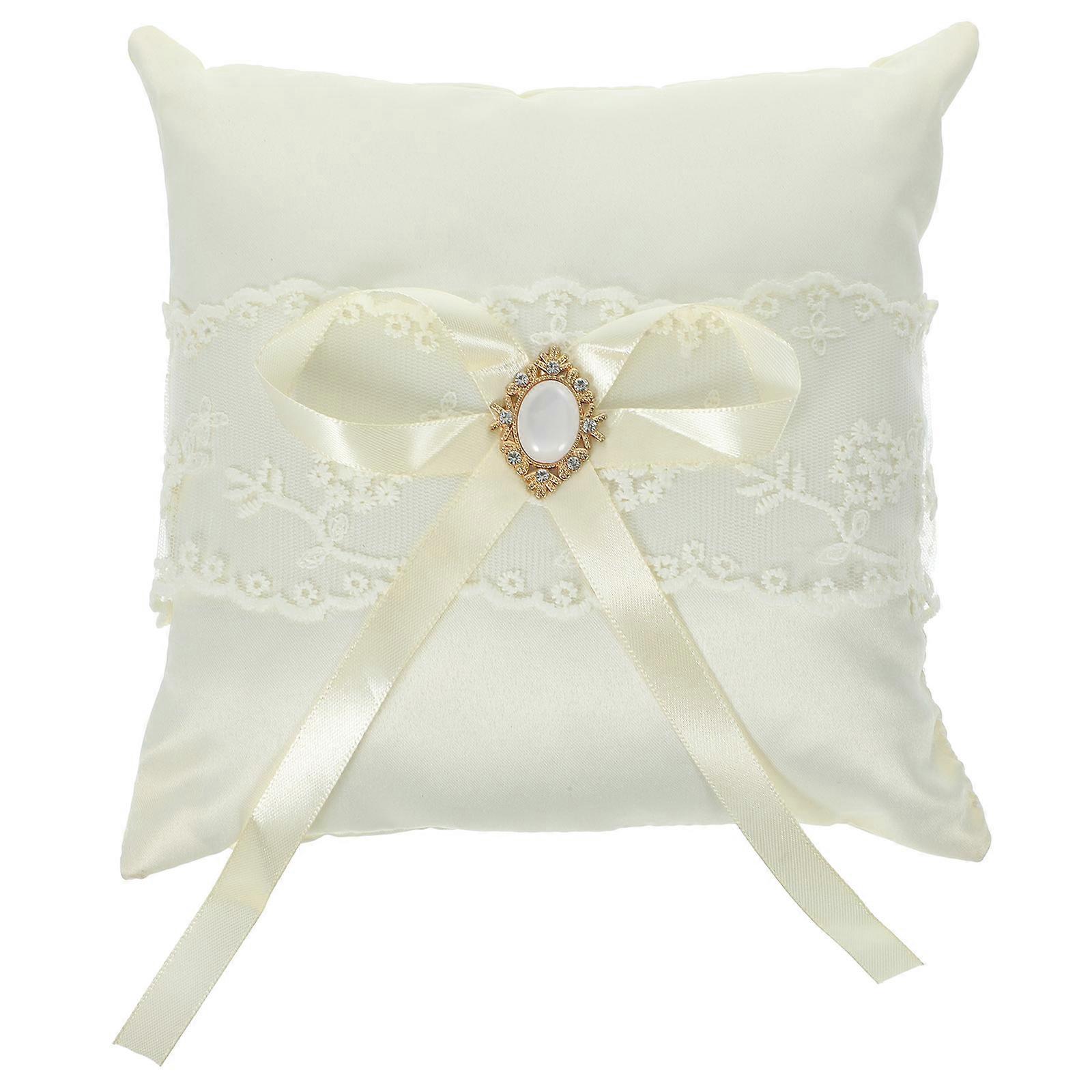 Elegant Lace Wedding Ring Pillow with Pearl Detail – Soft Cushion for Engagement and Wedding Ceremonies – Romantic Decorative Ring Holder for Bride