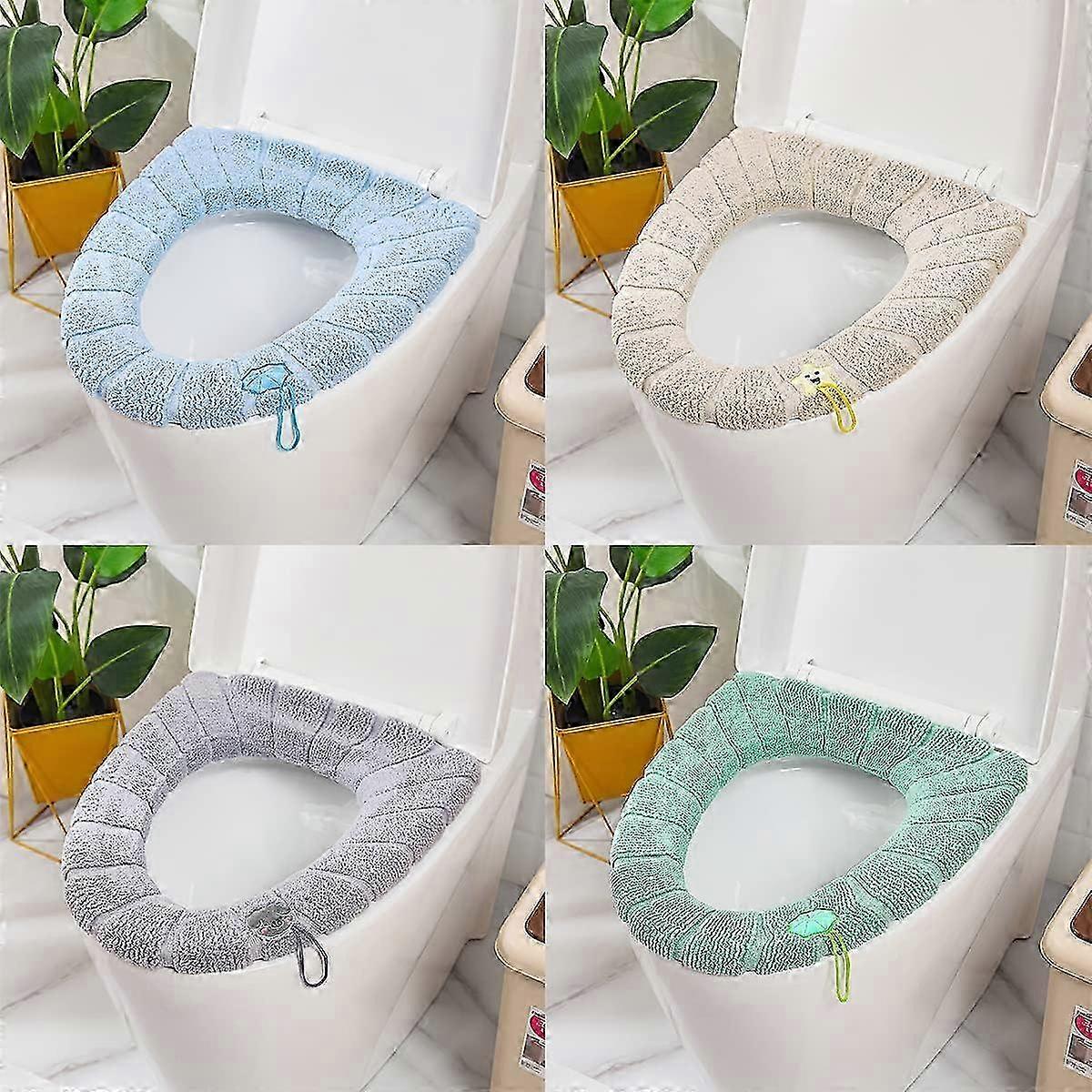 Soft Bathroom Warmer Handle Toilet Seat Cover Pad, Thicker Stretchable Washable Fits All Oval Toilet Seats (4Pcs)