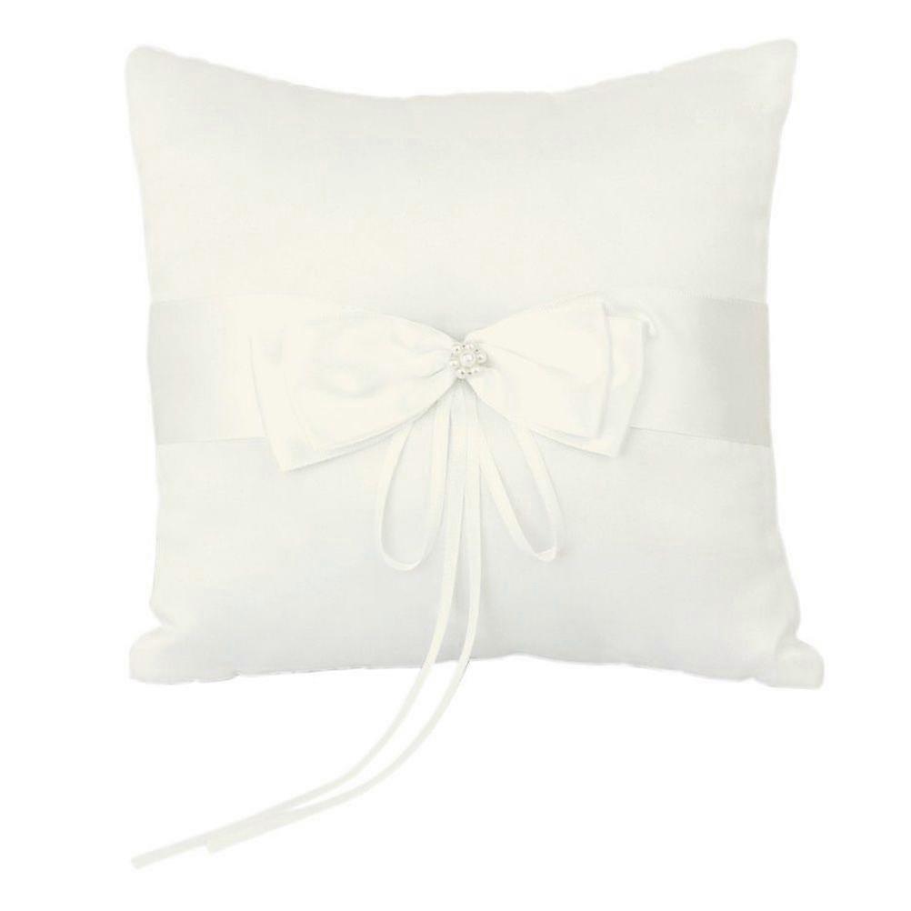 10*10cm Wedding Ceremony Ring Bearer Pillow Cushion with Satin Double Bowknot Flower Faux Pearl (Ivory)