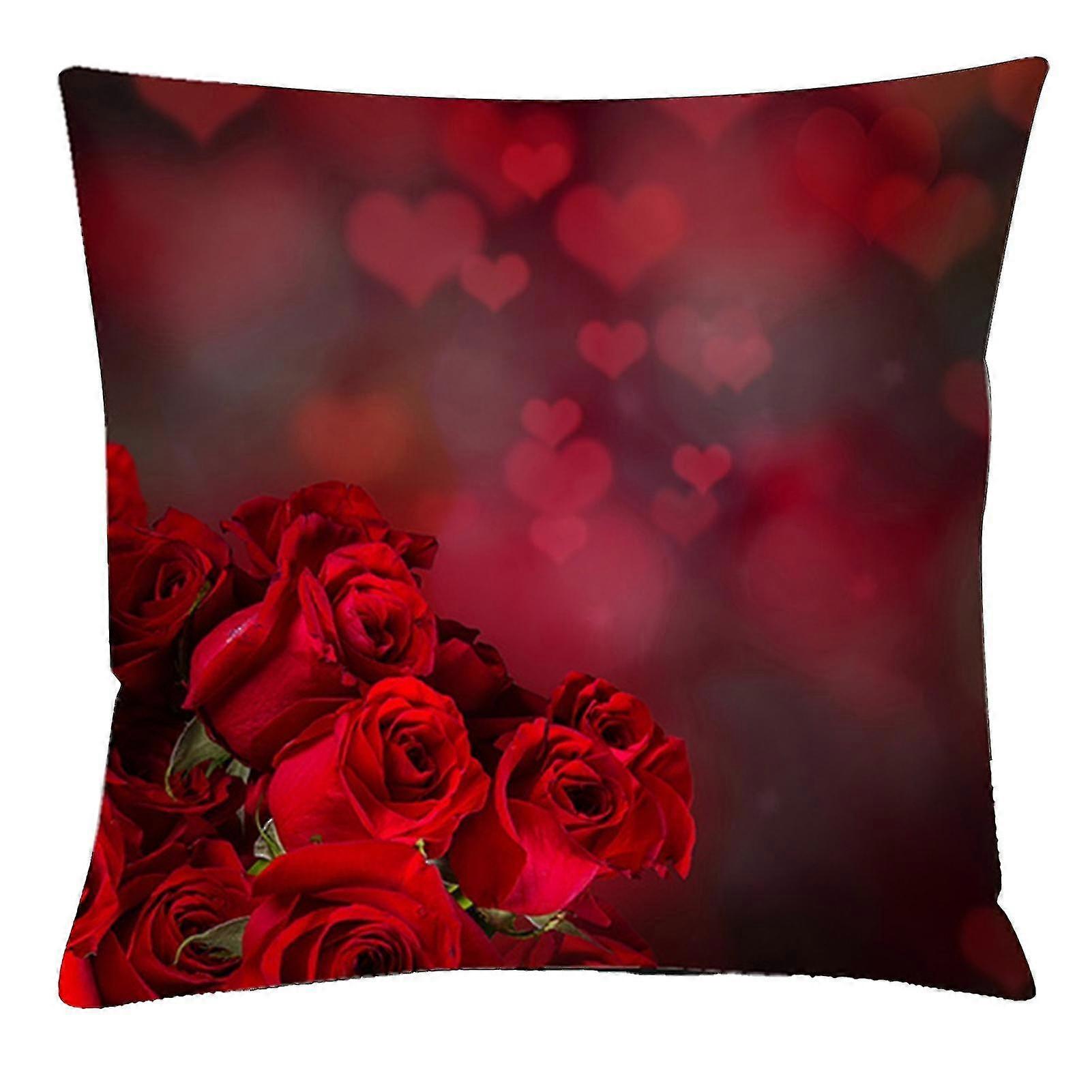 Cushion Cover Single-sided Printing Decoration Peach Skin Printed Red Rose Decorative Throw Pillowcase For Sofa