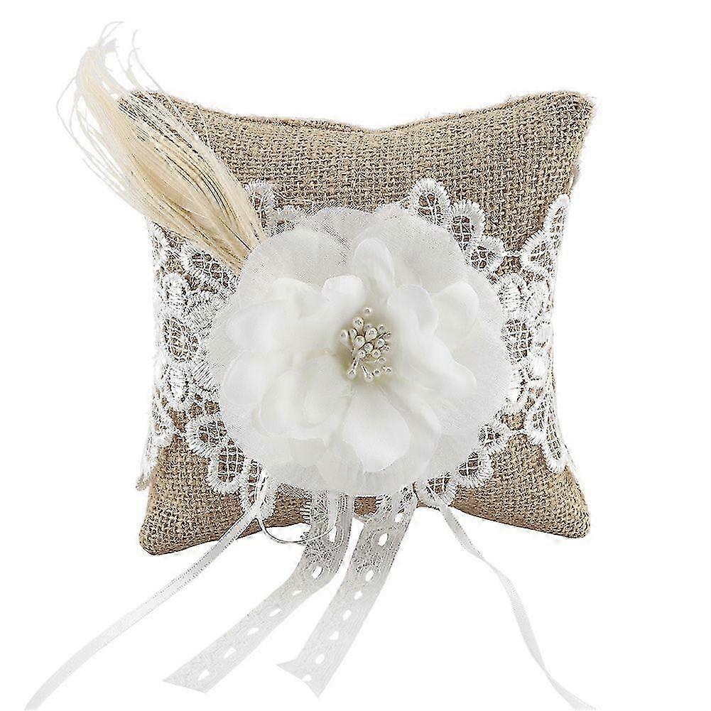 Wedding Burlap Ring Pillow Holder Cushion for Wedding Party (15cm*15cm)