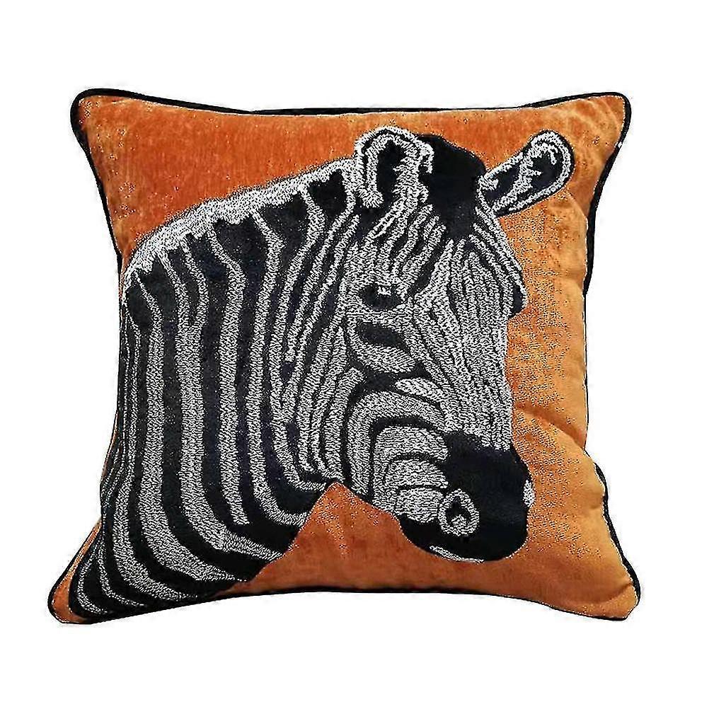 Zebra Embroidery Cushion Cover Brown Squre Pillow Case 45x45cm