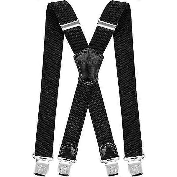 Suspenders with Extra Strong Metal Clips 4 cm Wide Heavy Duty Suspenders One Size Fits All Men and Women Adjustable X-shape (black)