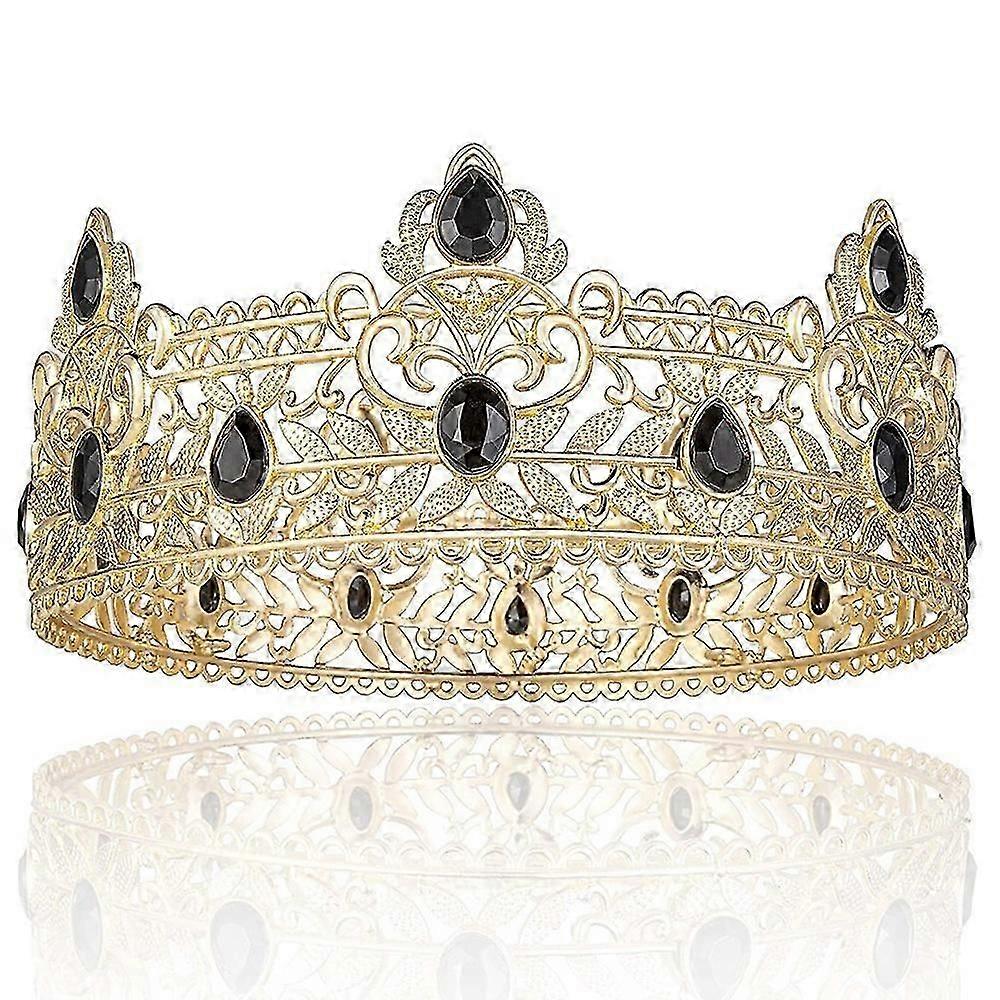 King Crown for Men, Prince Birthday Crowns with Black Rhinestone