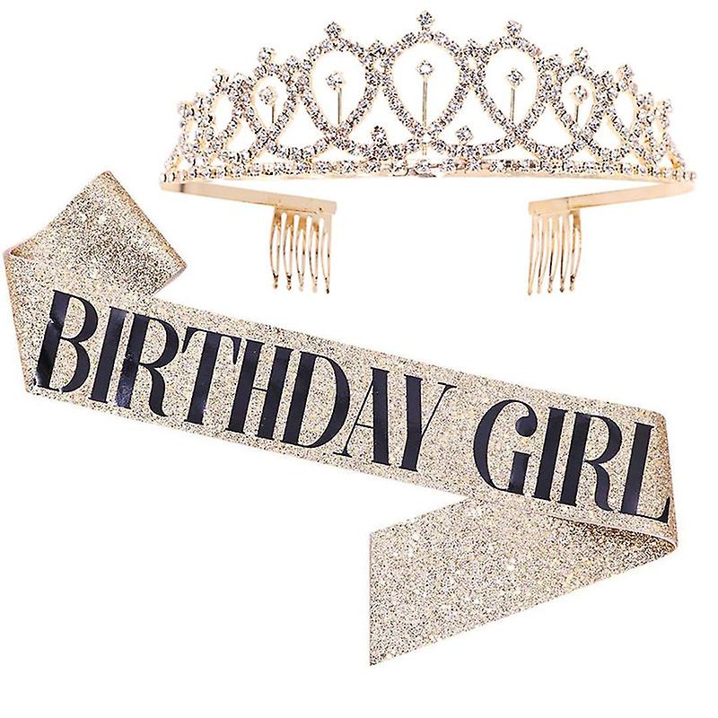 Birthday Crown for Women Glitter Birthday Sash and Tiara Set Happy Birthday Accessories