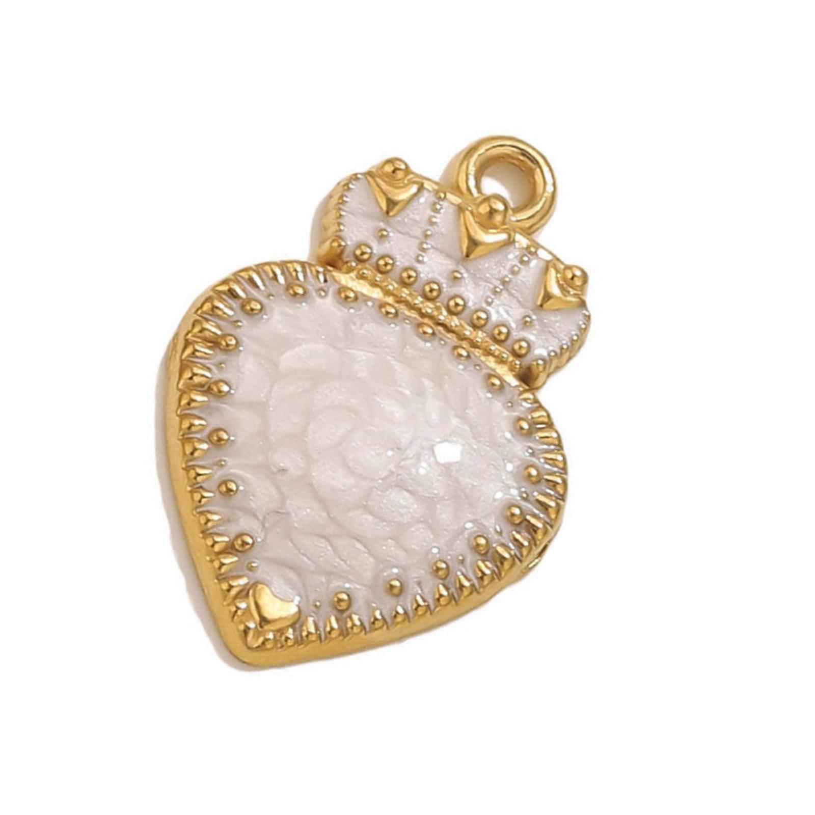 Crown Heart Charm Drop Jewelry Component Stainless Steel Accessories Creative Necklace Earrings Craft Supply White