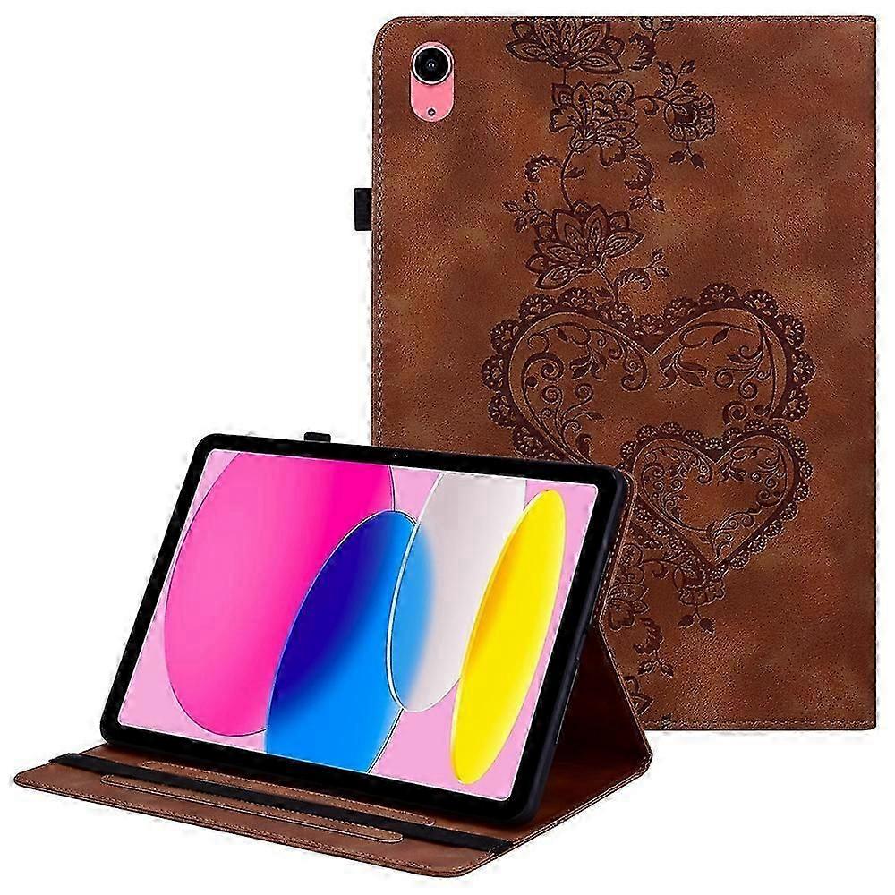 For Ipad (2025) 10.9 (2022) Leather Case Heart Imprint Foldable Stand Card Slot Stylus Holder Tablet