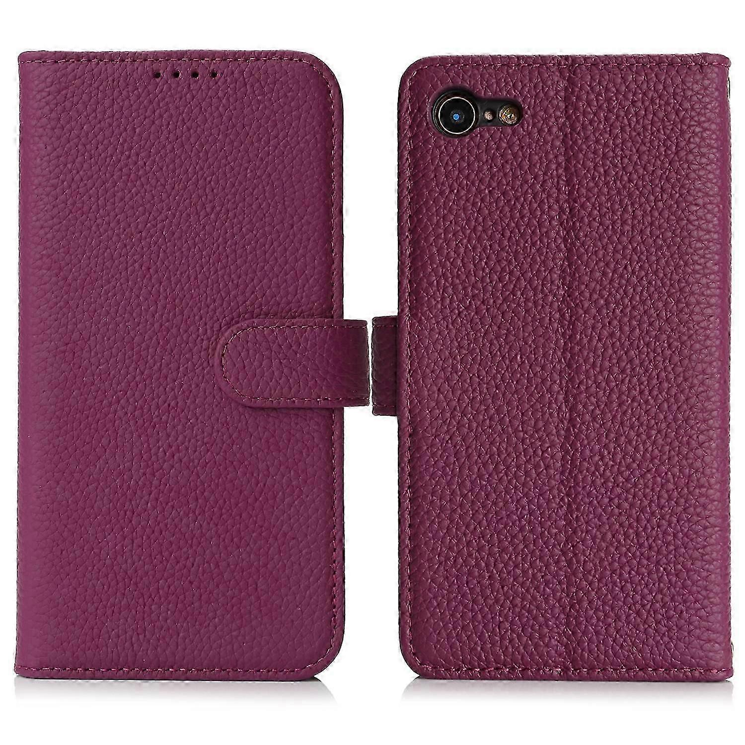 For Iphone Se (2022) (2020) 8 7 Stand Case Litchi Texture Genuine Cow Leather Wallet Phone Cover Rfi