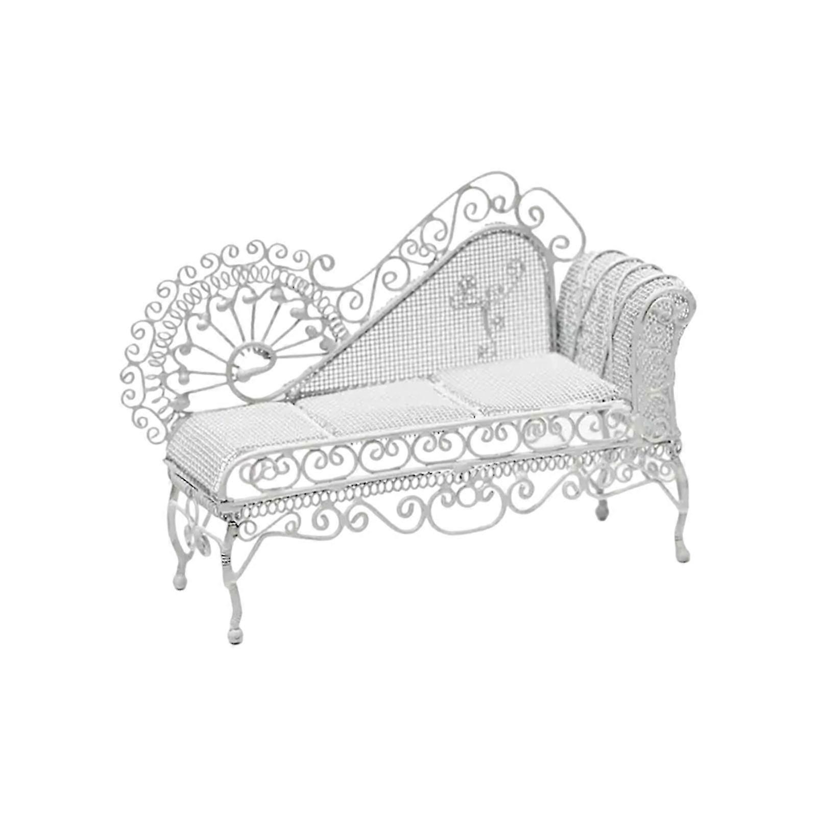 White 1/12 Vintage Victoria Garden Iron Bench Miniature Toys Accessories