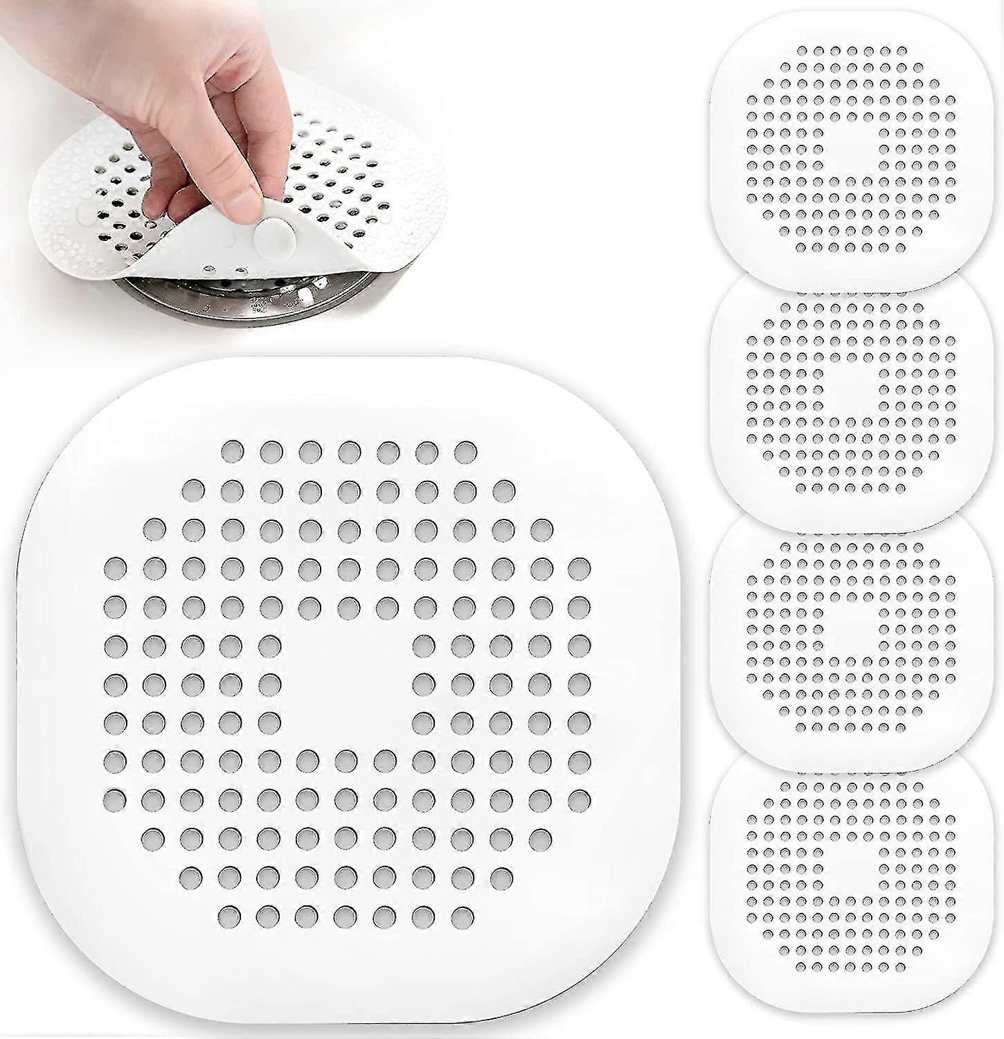 white, 5-piece, Shower Drain Cover, Silicone Hair Plug, With 4 Suction Cups, 5.5 Inch Square Hair Drain Pipe Protector, Non Clogging, Easy To Inst PXC