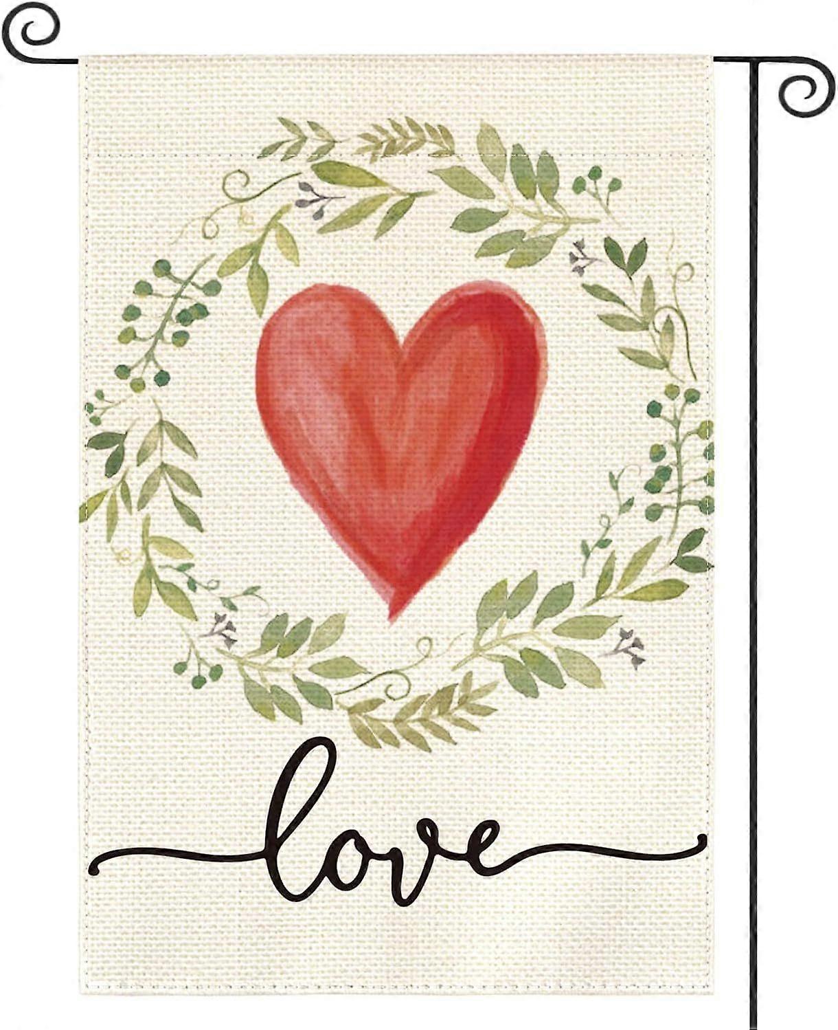 Love Heart Laurel Wreath Valentines Day Garden Flag 12x18 Inch Outside Double Sided, Love Anniversary Party Yard Outdoor Decoration