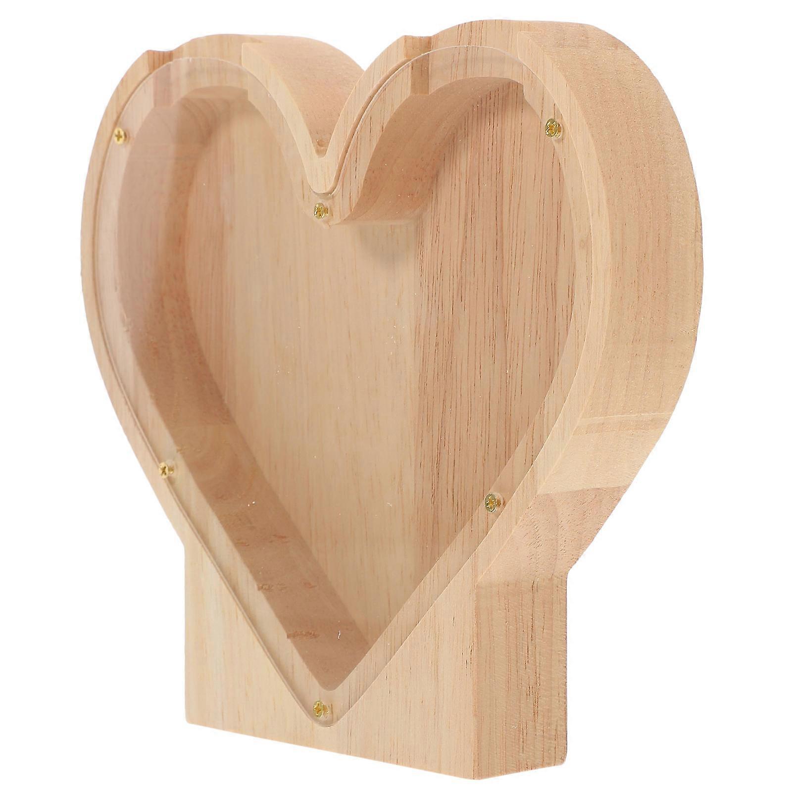Heart Shaped Wooden Piggy Bank Money Box 2Pcs for Mothers Day Gift