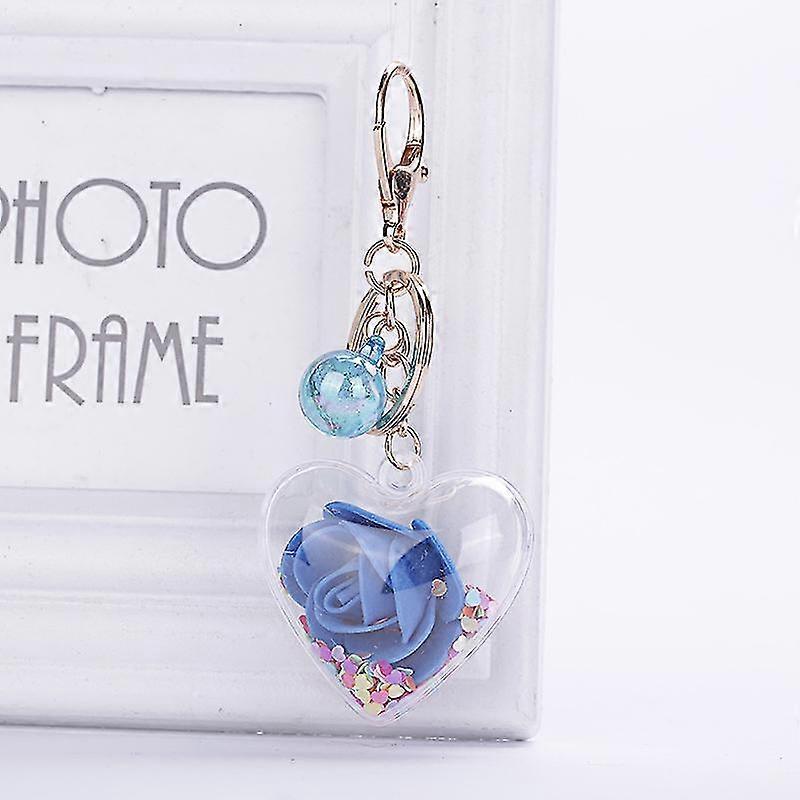 Bright Pink Heart Eternal Life Flower Love Pendant Car Lovers Key Chain