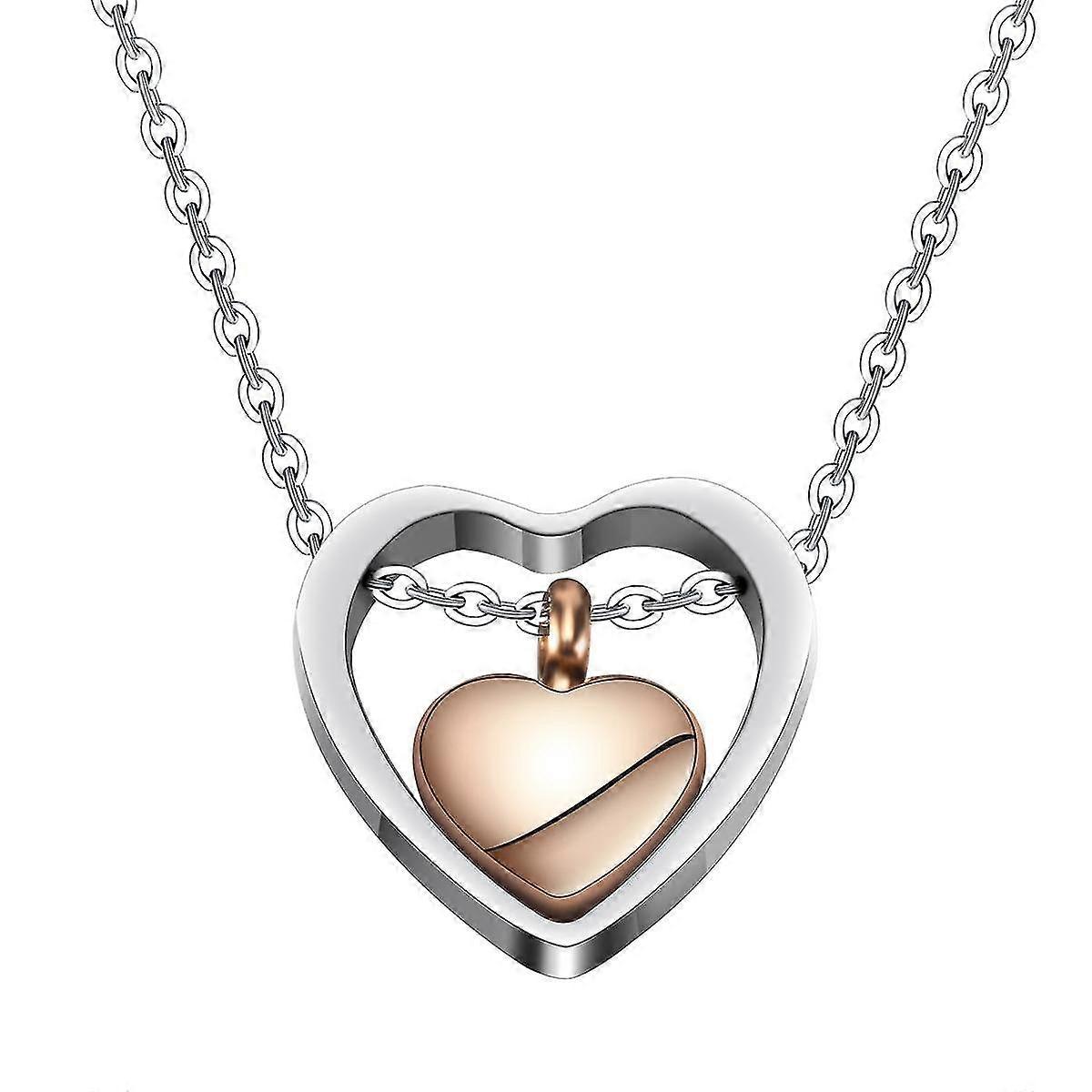 Double Heart Rose Gold Cremation Urn Necklace Pendant Funnel Fill Kit Keepsake Memorial Ashes-Yvan