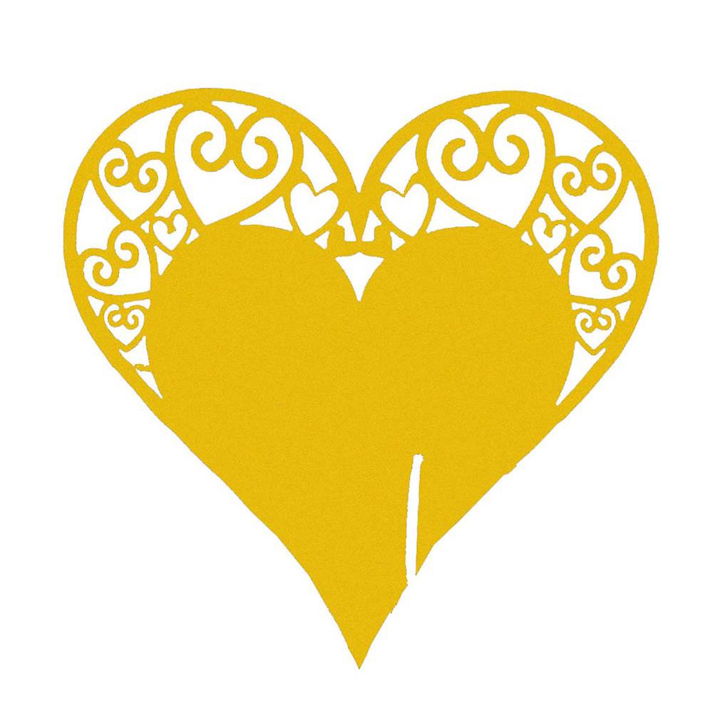 Heart Shape Wedding Party Glass Place Name Cards. Laser Cut On Luxury Pearlescent Card