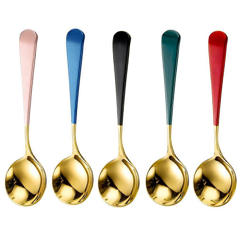 Here's a polished product description based on the details you provided: **5pcs Stainless Steel Dessert Spoons – Round Teaspoons for Ice Cream,