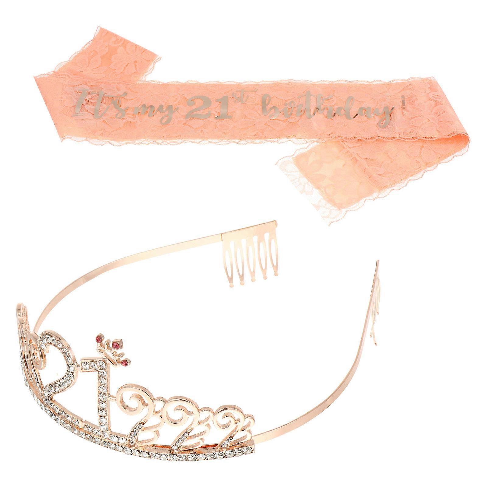 Crown Hair Band with Letter Printing Birthday Party Accessories for Girls Gold 160x10.5cm 2Pcs