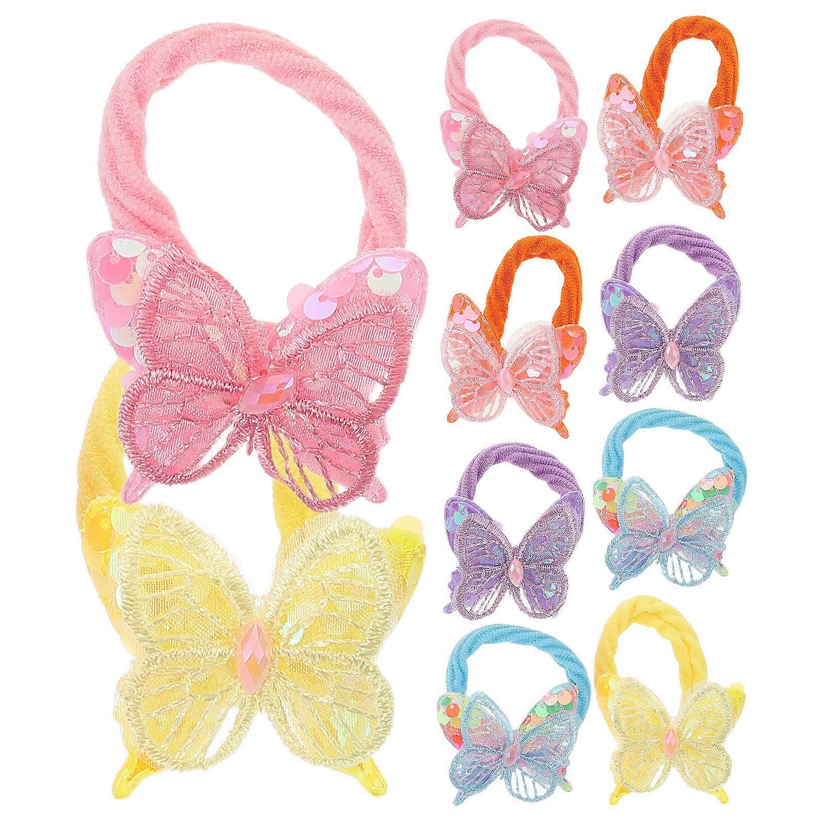Childrens Hair Band Butterfly Style Ponytail Holder For Parties Purple 10Pcs