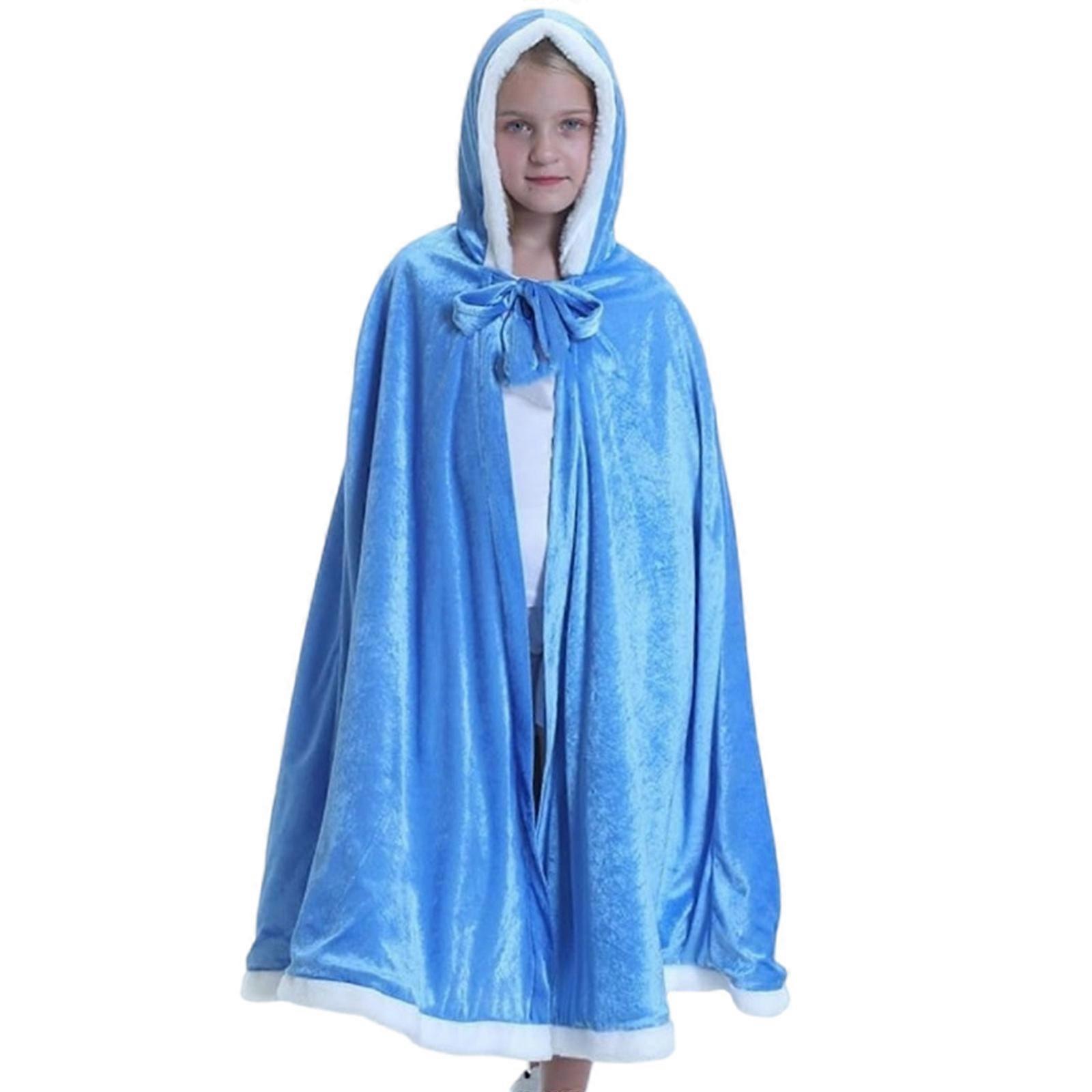 Dressing Up Hodded Cape Cloak Princess Hooded Cape Cloak Halloween Princess Costumes Faux Furs Princess Cape with Hood Sky blue Shoulder to skirt 10
