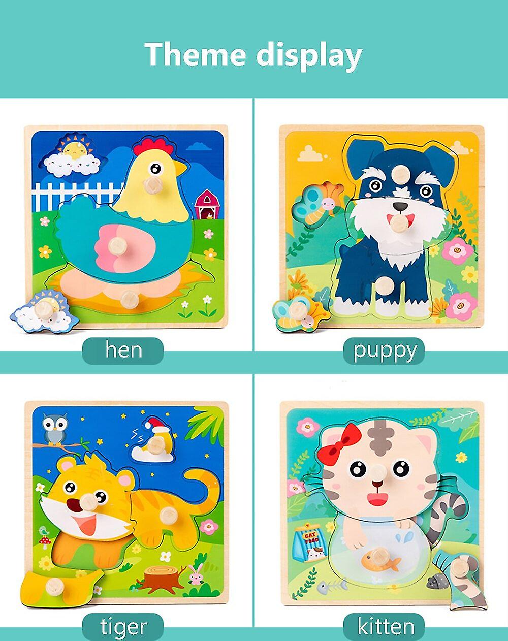 Hand Grab Board Puzzle Wooden Toys For Children Cartoon Animal Fruit Wood Jigsaw Kids Baby Early Educational Toy Hot Sell
