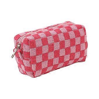 Checkerboard Pencil Case Cosmetic Bag Desk Accessories Multicolor Knitting Checkerboard Wool Checkered Storage Products,50% Offer