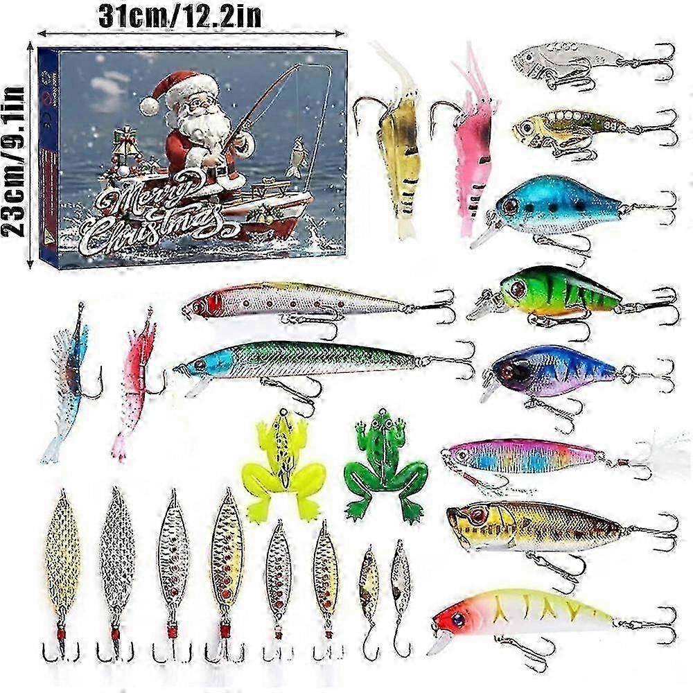 Advent Calendar Fishing Christmas Countdown - 24 Days Fishing Lures Set for Fisher Adult Men Teen Boys - 2024 Xmas Surprise Gift