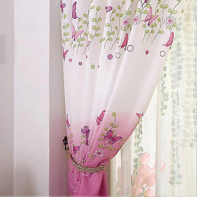 Semi Sheer Window Curtain Panel Polyester 3D Butterfly Floral for Living Room/Bedroom