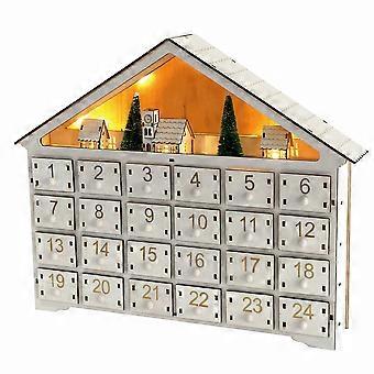 Christmas Calendar 24 Drawers Wooden Compartments with LED Lightings White 24-day Countdown Calendars Kids Gift