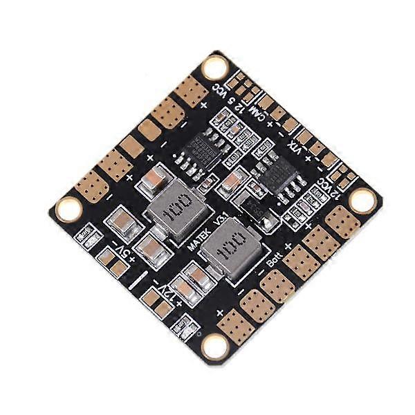 Features: - 2 oz copper and 4-layer PCB. - ESC & battery solder tabs in pairs - Solder bridges with different voltages for Camera & VTX. - DC/DC synchronous buck regulator, efficiency is up to 95%. - TVS (Transient Voltage Suppressor) protection for DC/DC chip. - 5V & 12V output LED indicators & short-circuit tolerant Specification: General: - Input voltage range (operation 2S-6S): 7.2 - 26VDC - Regulated 5V and 12V outputs - LED power (5V & 12V outputs) - 4 ESC outputs ESC Outputs: - Continuous current: 20A per output - Peak current (10 seconds/minute): 30A per output BEC 5V Output: - Designed for RC receivers, flight controllers, OSD, and servos. - Voltage: 5.0 +/- 0.1V DC - Continuous current: 3 Amps - Short-circuit tolerant (10 seconds/minute) - LED (indicates voltage is in regulation, within 10%) BEC 12V Output: - Battery should be 4S ~ 6S LiPo - Standard output designed to power cameras and video transmitters, etc. - Voltage: 12.0 +/- 0.2VDC - Continuous current: 2 Amps (max.3A 10s/minute) - Short-circuit tolerant (10 seconds/minute) - LED (indicates voltage is in regulation, within 10%) CAM & VTX Voltage Bridge - 3S operation. Select VCC for 12V camera & 12V VTX, VCC = Battery Voltage. - 4~6S function, select 12 for 12V camera and 12V VTX - 3~6S function, select 5 for 5V camera - Video pass from CAM pad to VTX pad Physical: - Dimensions: 36 x 36 mm - Weight: 6g - Mount holes 30.5mm square spacing Package Including: 1 x Power Distribution Board PDB