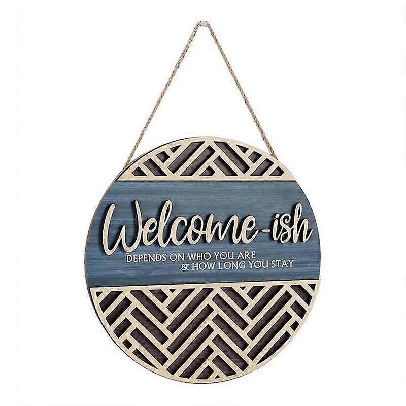 3D Welcome Hanging Sign Plaque for Front Door Wall Decor, Funny Welcome-Ish Wooden Hanger, Rustic Mi