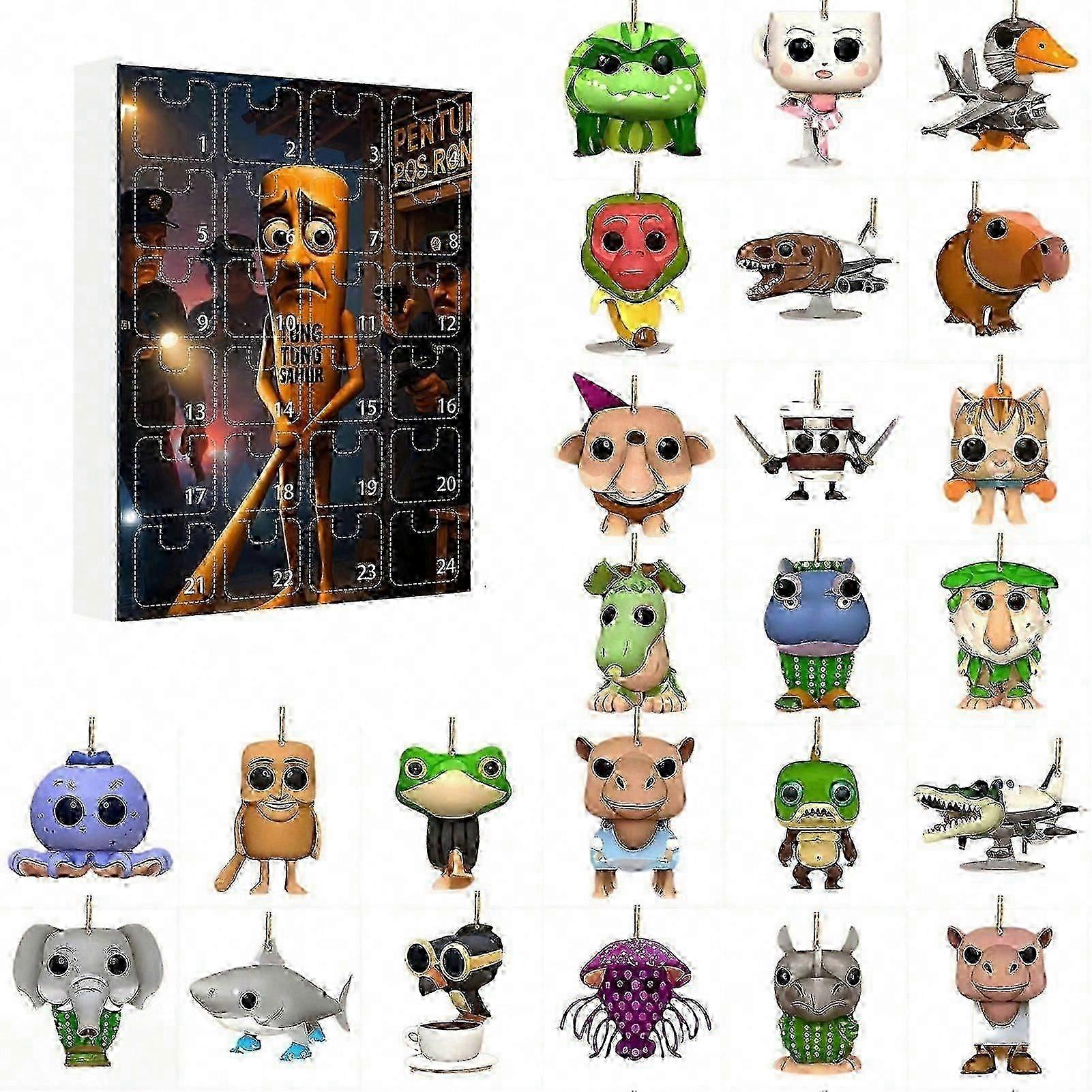 Tung Tung Tung Sahur 24 Days Advent Calendar 2025, 2d Acrylic Keychain Brainrot Italian Animal Gift For Kids