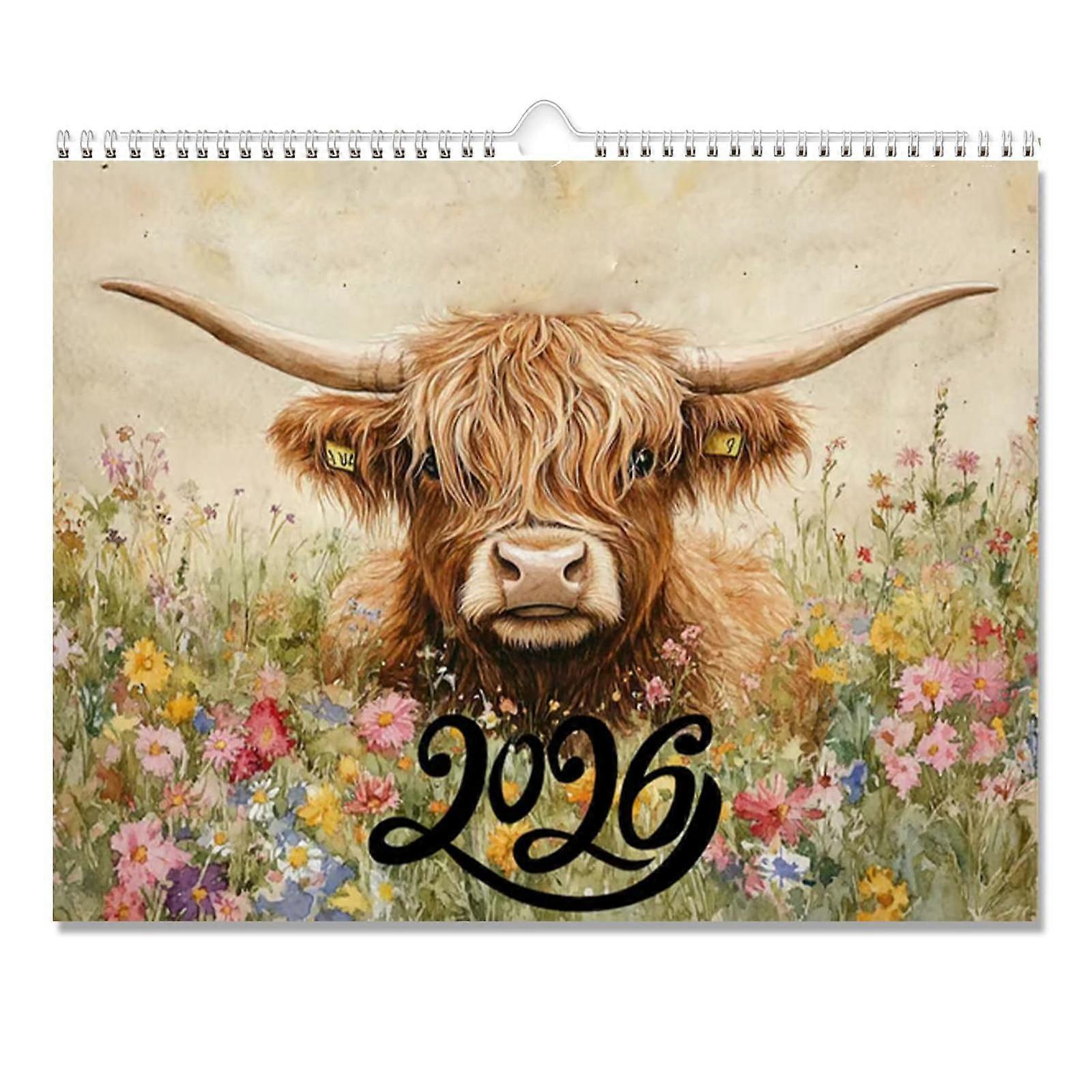 2026 Art Cattle Calendar - Rural Cottage Style Wall Decor and Monthly Planner, Art Cattle Calendar for 2026 in Scottish Arts, Essential for Animal