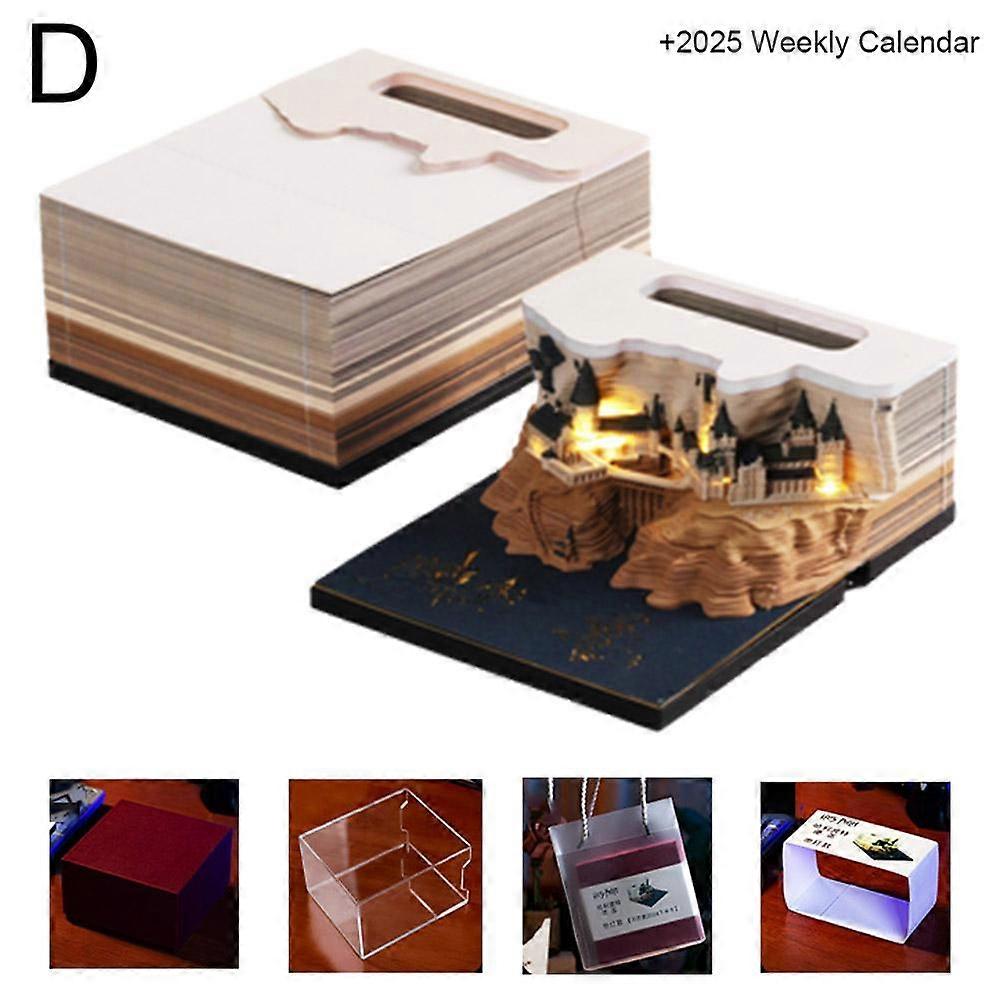 Magic Castle 3D Paper Carving Calendar Tear Off Notepad with LED Lights Creative Art Desk Decor Gift