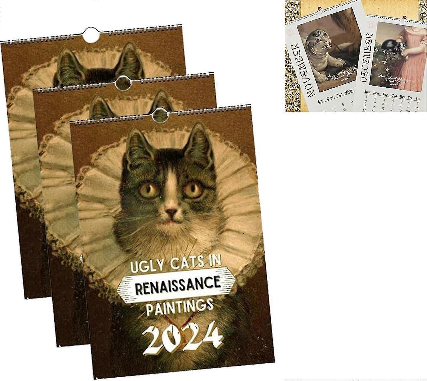 Cat Wall Calendar 2024, Ugly Cats In Renaissance Painting Calender 2024, Funny Renaissance Cat Calendar, 12 Month Cat Calendars Gifts