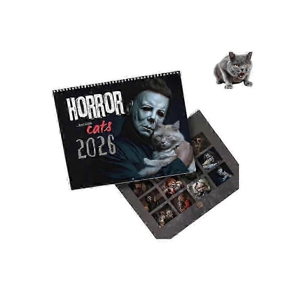 2026 Halloween Horror Movie & Cats Wall Calendar –Spooky Feline Art, 11x8.5 Inch