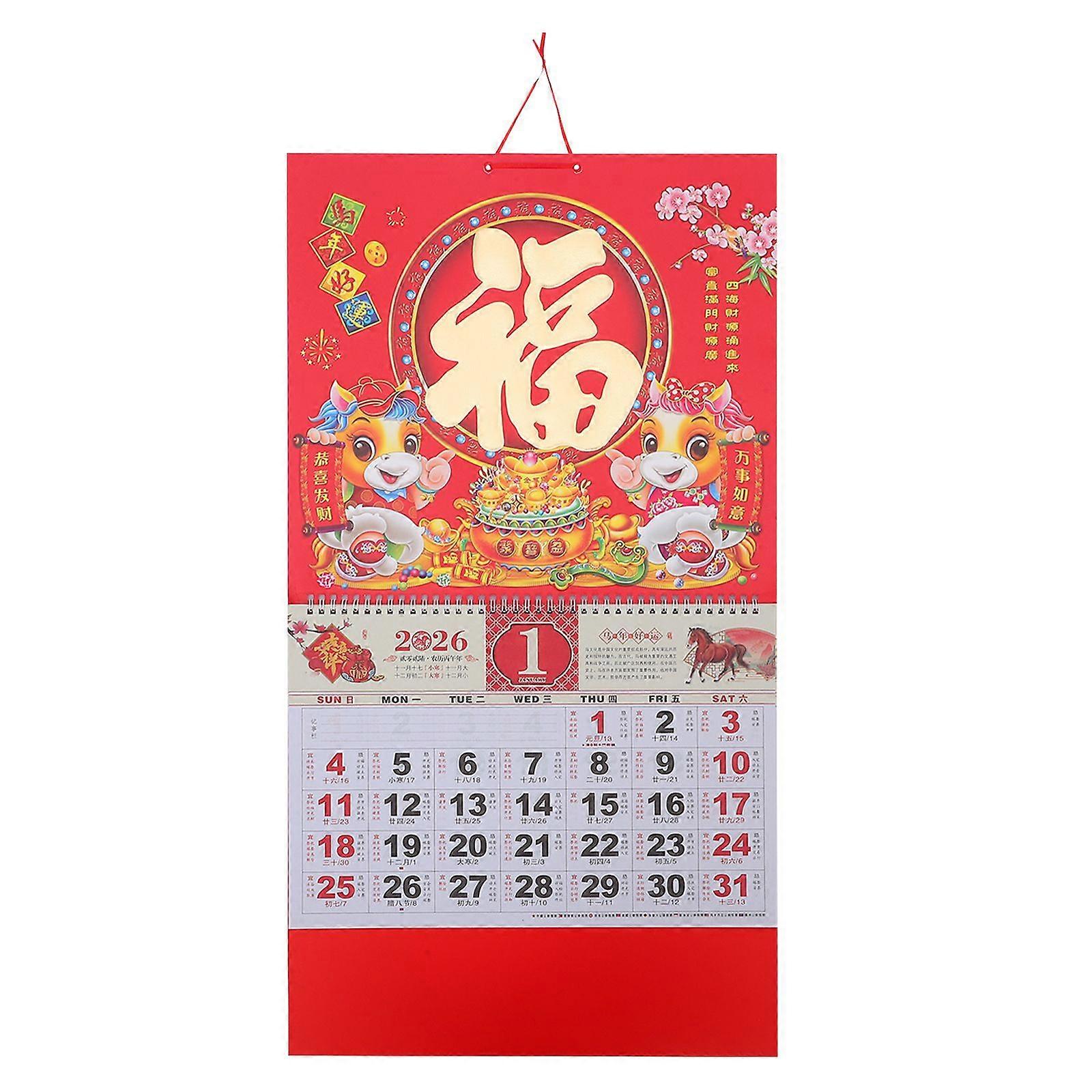 Wall Calendar 2026: Chinese Traditional Lunar Horse New Year Hanging Calendar Spiral Binding - Monthly Planner For Home Office 26.72x14.34in