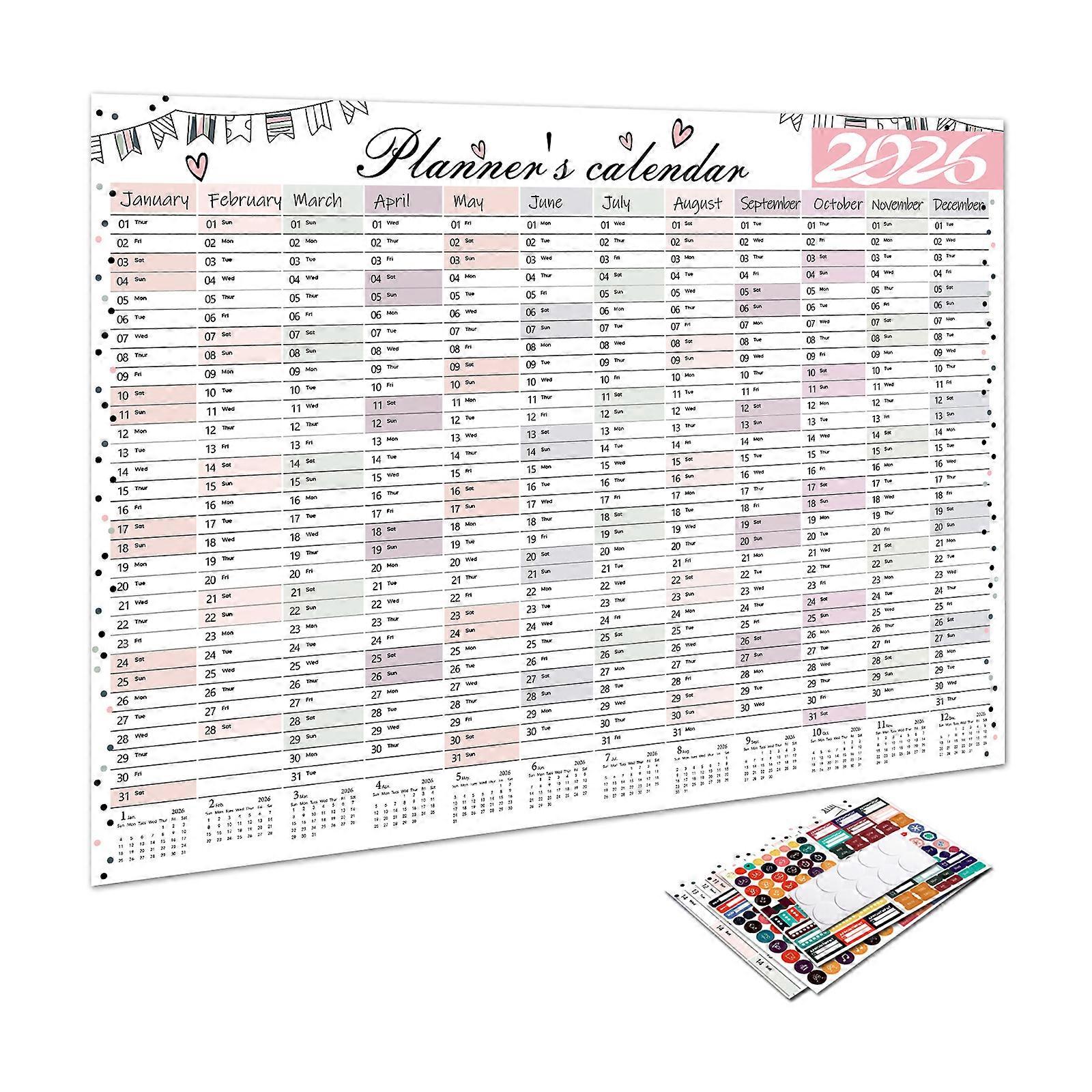 2026 wall calendar, poster-Styles weeklys planner with stickers, Made Ofss 12-month thick paper, suitable for home, office, school, teachers and