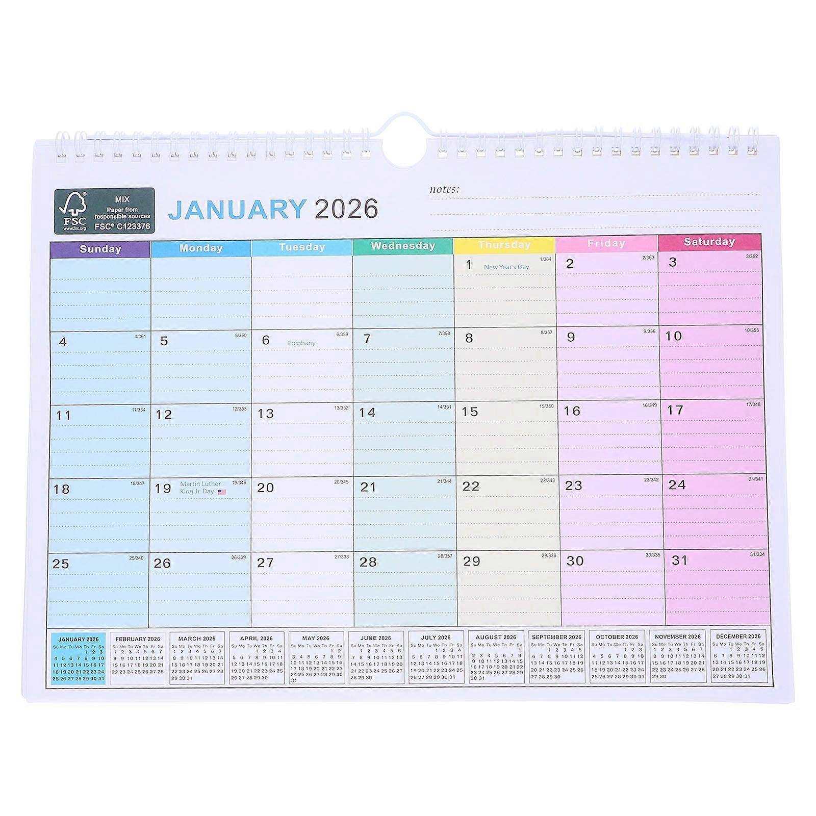 Wall Calendar 2026-2027: Hanging Calendar Jan 2026 To Jun 2027 18 Months Planner With Blank Daily Schedule Blocks For Family Holidays Office Use