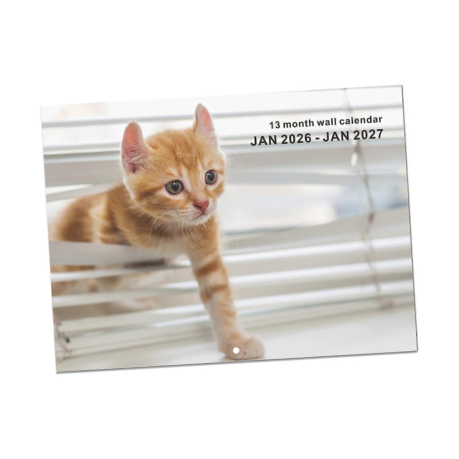 Large Print Cats Themed 2026 Calendar Recycled Paper Wall Mount Hook Vibrant Monthly Illustrations Perfect For Pet Enthusiasts Multicolor